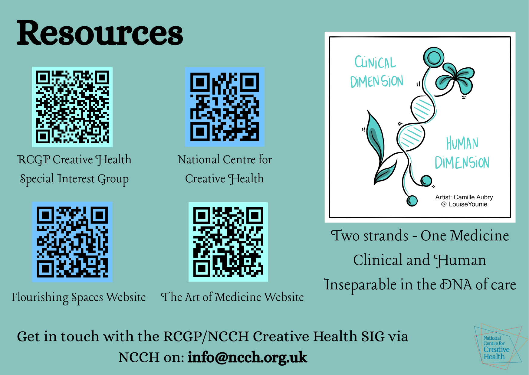 The Royal College of General Practitioners (RCGP) has supported the creation of this group and the National Centre for Creative Health provides the Secretariat for this GP Special Interest Group.